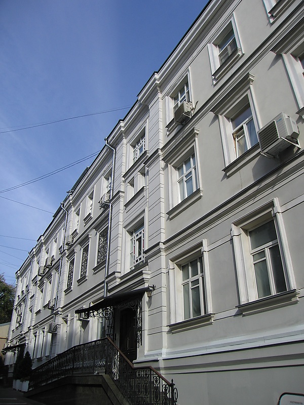 - № 20, — на этом месте находился дом, построенный в 1868 году архитектором А. Л. Обером, который, возможно[19], включал в себя неисследованные палаты XVII—XVIII веков. В доме жил хормейстер и дирижёр У. И. Авранек[20]. В 1892 году дом приобрёл профессор Михаил Духовской; в справочной книге «Москва-Сибирь» за 1908 год по этому адресу записана типография «Рябушинский П. П.». Здание было выведено из списка вновь выявленных памятников архитектуры и снесено в конце 2003 года. На его месте построена 2-я очередь «Усадьбы-Центр» Правительства Москвы (1997, архитекторы М. Мандрыгин, С. Арендарук)[21].