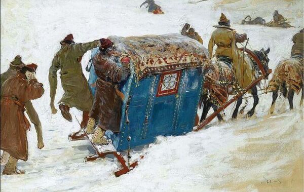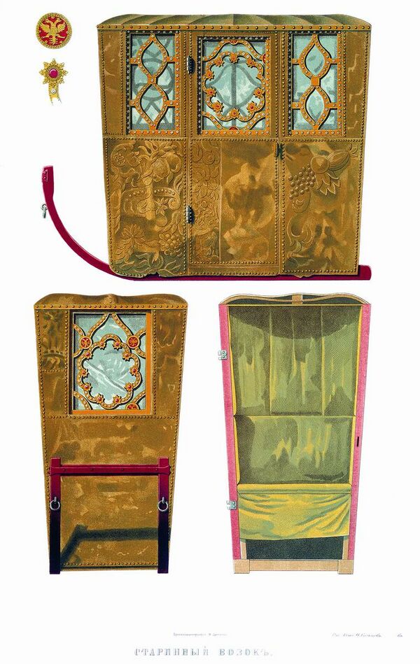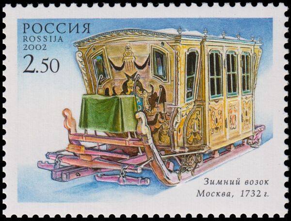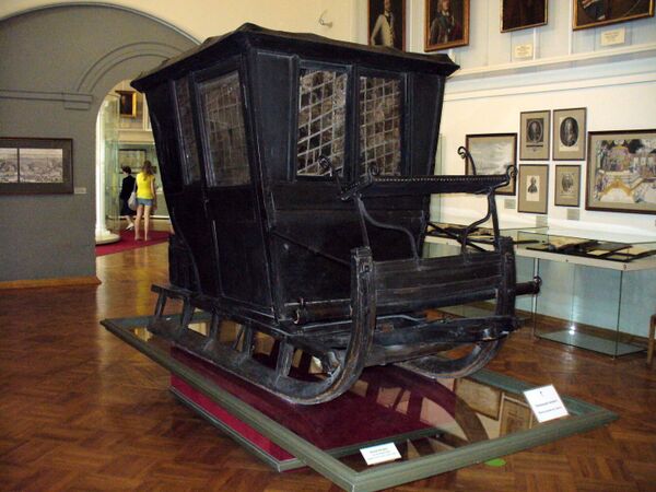 В XVIII столетии для путешествия «высоких особ» употреблялась карета, снятая с колёс и поставленная на полозья[2].