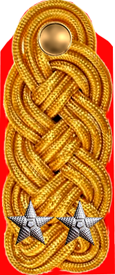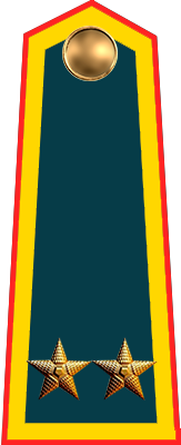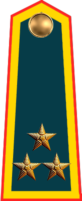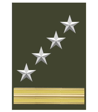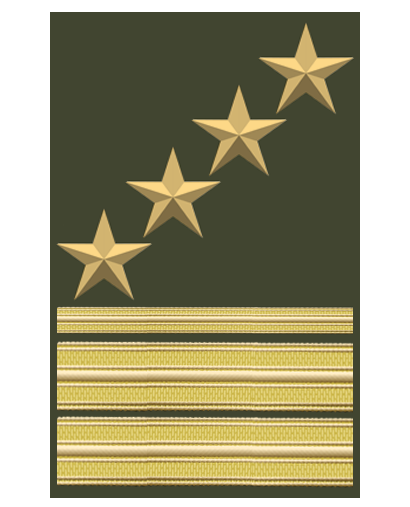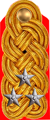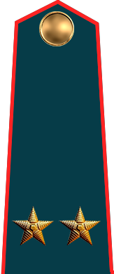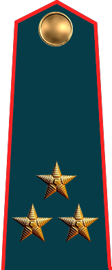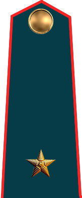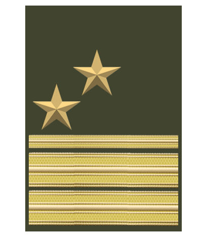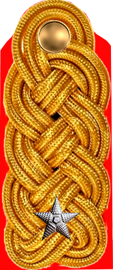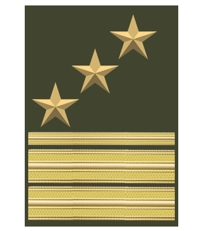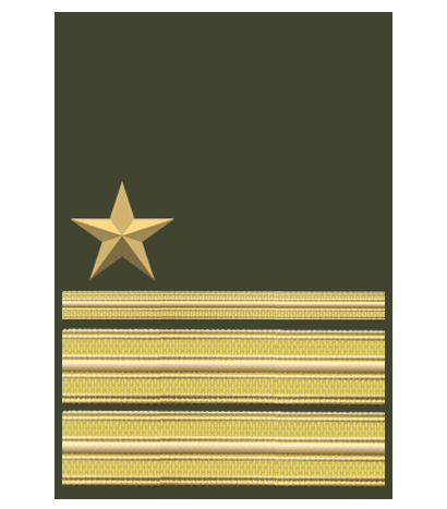 Генерал армии | Генерал-лейтенант | Генерал-майор | Полковник | Подполковник | Майор | Капитан | Лейтенант | Младший лейтенант |