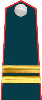 Генерал армии | Генерал-полковник | Генерал-лейтенант | Генерал-майор | Полковник | Подполковник | Майор | Капитан | Старший лейтенант | Лейтенант | Младший лейтенант |