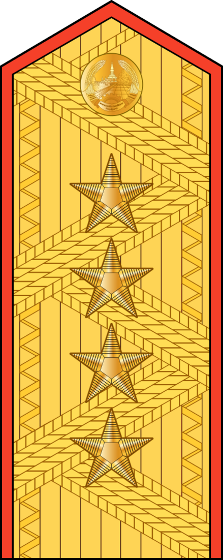 | лаос. ພົນເອກ | лаос. ພົນໂທ | лаос. ພົນຕີ | лаос. ພົນຈັດຕະວາ | лаос. ພັນເອກ | лаос. ພັນໂທ | лаос. ພັນຕີ | лаос. ຮ້ອຍເອກ | лаос. ຮ້ອຍໂທ | лаос. ຮ້ອຍຕີ | ||