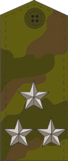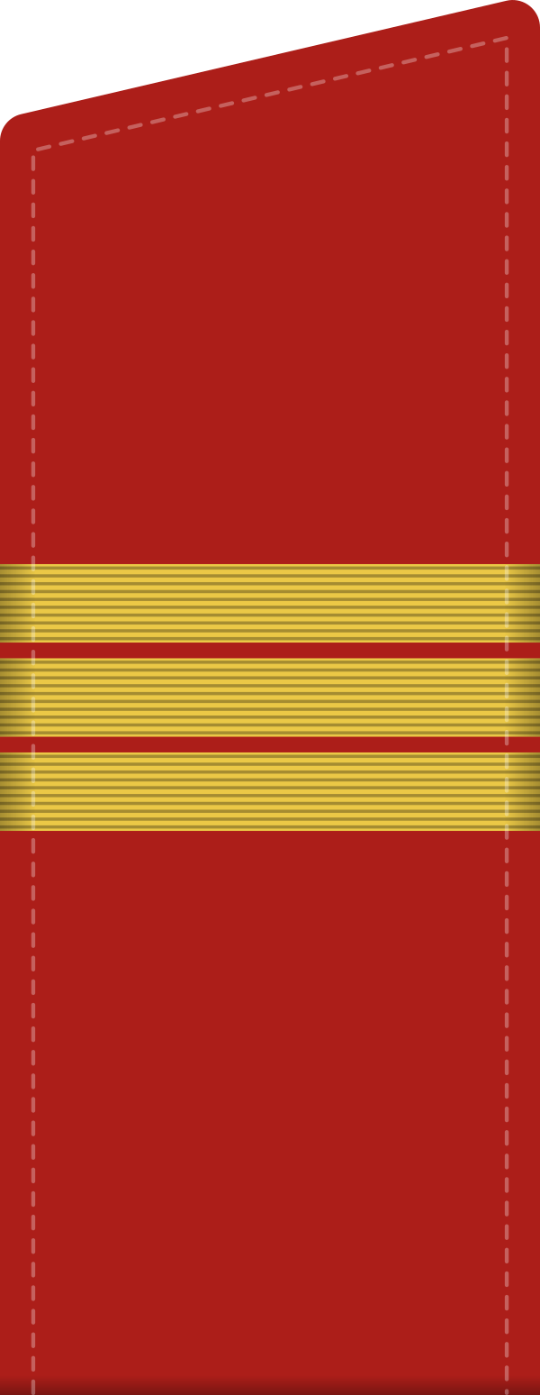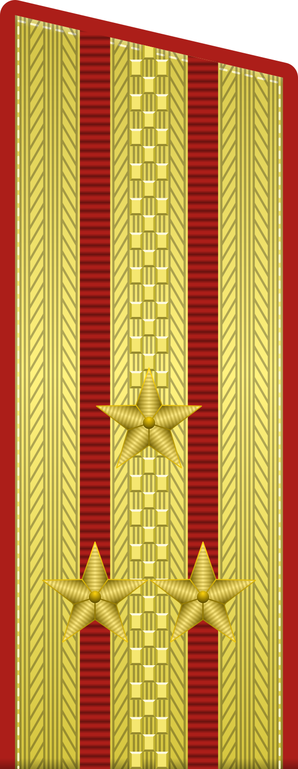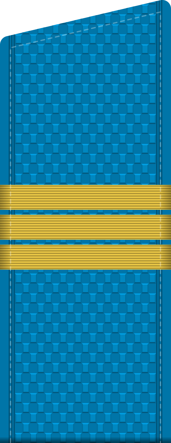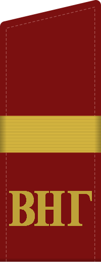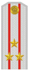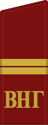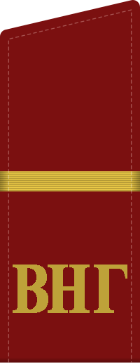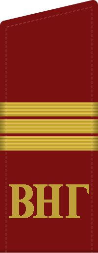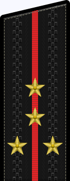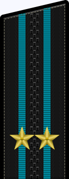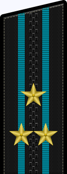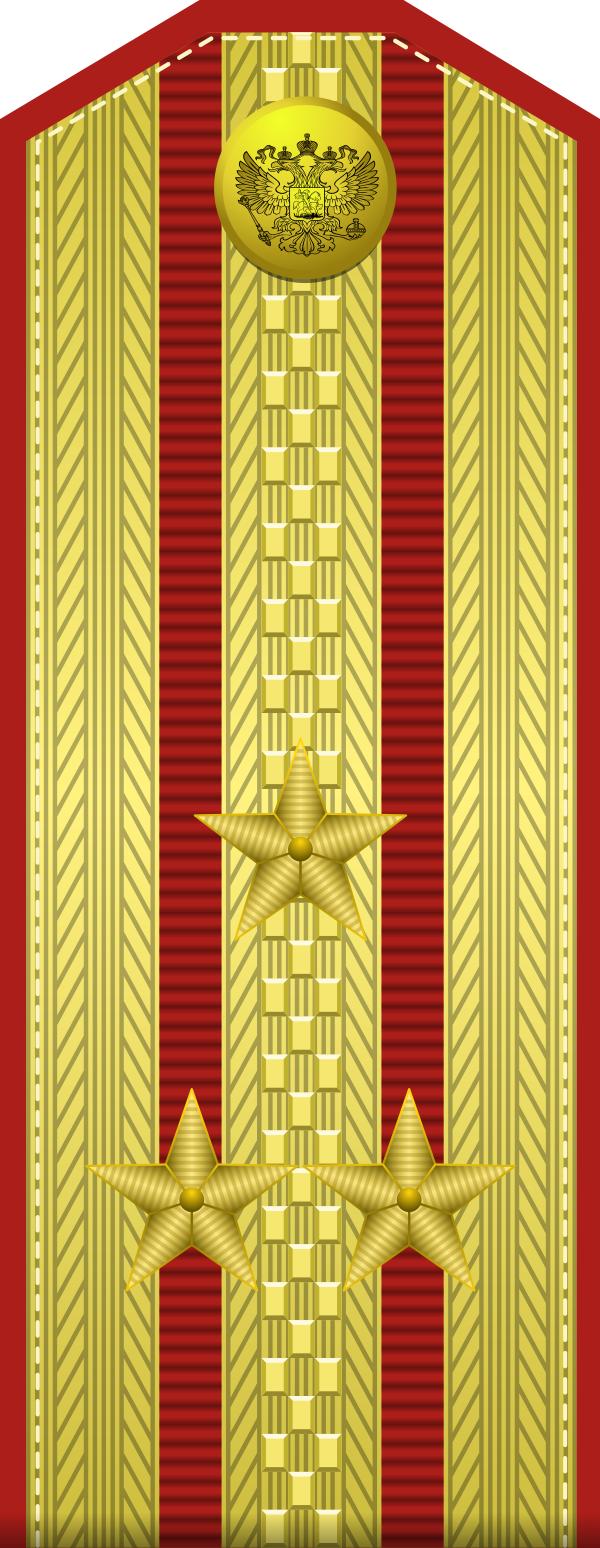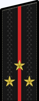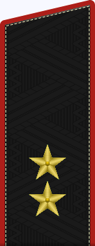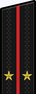 - Два просвета и бо́льшие по размеру металлические звёздочки (20 мм). На полевых погонах просвета нет.