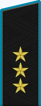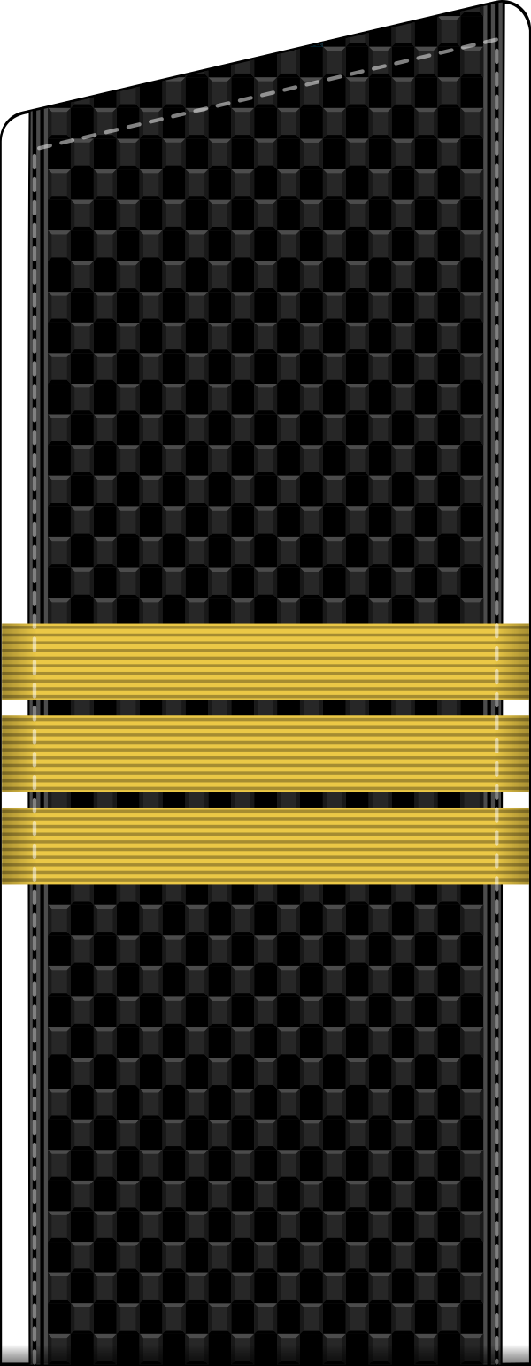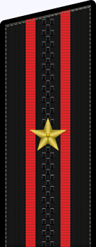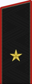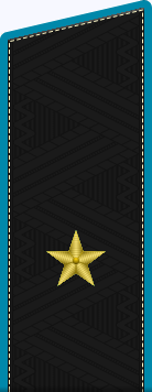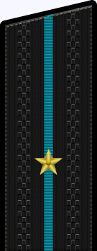 - Парадный китель — нашивные погоны золотистого цвета, по бокам окантовка чёрного.