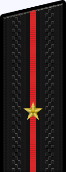 - Одна вертикально расположенная полоска — просвет. Звёздочки металлические, маленькие (13 мм). На полевых погонах просвета нет.