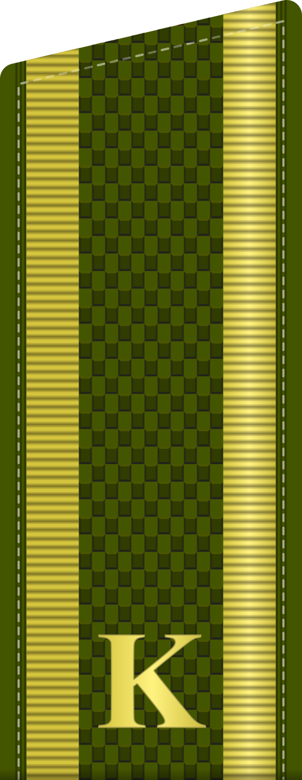 Войсковые звания: Рекрут, Рядовой, Ефрейтор, Капрал, Младший сержант, Сержант, Старший сержант, Старшина, Подпрапорщик, Прапорщик, Старший прапорщик, Главный прапорщик, Младший лейтенант, Лейтенант, Старший лейтенант, Капитан, Майор, Подполковник, Полковник, Старший полковник, Генерал-майор, Генерал-лейтенант, Генерал-полковник, Генерал-капитан, Вице-маршал, Маршал, Обер-маршал, Генералиссимус вооружённых сил.
