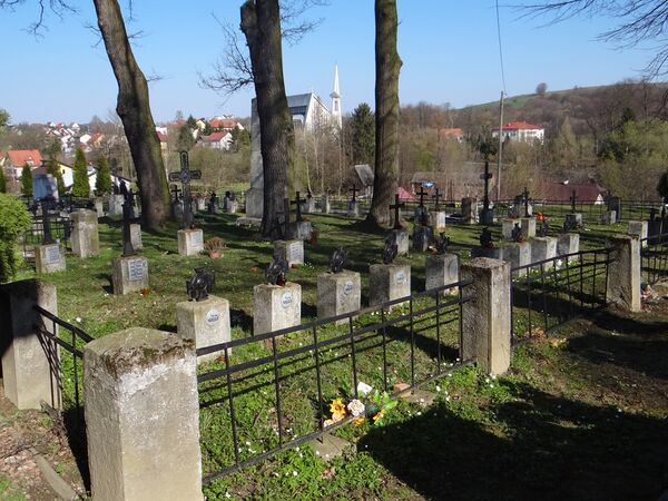 На кладбище в 15 братских и 38 индивидуальных могилах похоронены 131 австро-венгерский и 14 русских солдат.