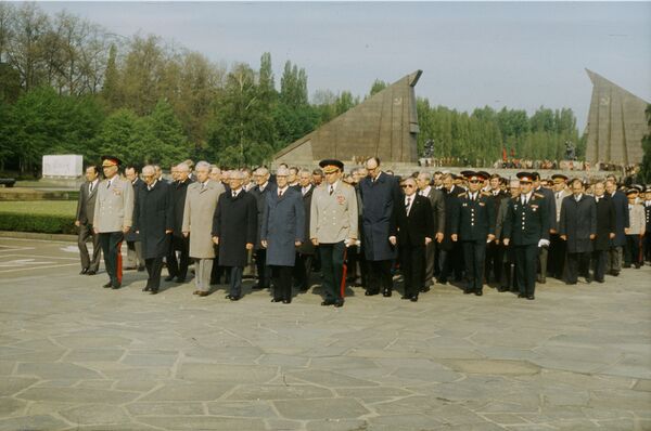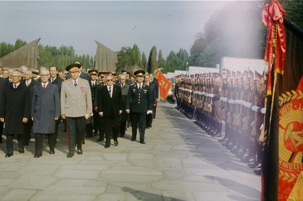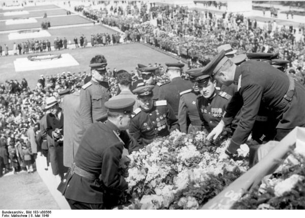 В 1946—1947 году при строительстве мемориала состоялось перенесение останков советских воинов, погибших в боях за Берлин, из многочисленных братских могил, располагавшихся по всему городу[1], в три главные локации, на которых были возведены крупные мемориалы. В Трептов-парк было перезахоронено более 7000 тел, из них более половины неизвестных. На мемориале нет ни одной фамилии захороненных, но в Сенате Берлина хранится Книга Памяти со списком известных имён и фамилий похороненных. Второй, более полный экземпляр такой книги хранится в Вюнсдорфе.
