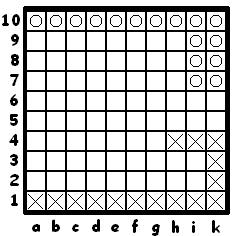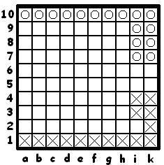 - В начале игры доска пуста, и полей доступных для крестиков нет, поэтому в порядке исключения они имеют право сделать свой первый «ходик» на a1. Точно также нолики имеют право своим первым «ходиком» выставиться на k10.