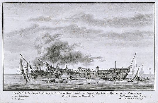 Большинство боев заканчивались потерями не выше 20 % для проигравшего. Но некоторые бились с особенным упорством — так, Serapis потерял убитыми и ранеными почти 50 %, и даже победивший его Bonne Homme Richard потерял треть команды. Одна такая дуэль особенно прославилась: 6 октября 1779 года, HMS Quebec против французской Surveillante, номинально ему равной (оба 32-пушечные). Это был бы бой абсолютно равных, если бы не 9-фн пушки Quebec (в момент его оснащения 12-фунтовых не нашлось), а команда Surveillante не была, как обычно, многочисленнее. Тем не менее бой длился 2 часа, оба корабля лишились мачт, а потери в людях росли стремительно. Под конец британский корабль загорелся, а французский, чей капитан дю Кеди́к (фр. du Couëdic) был смертельно ранен, прекратил огонь и рыцарски начал спасение англичан, каких мог подобрать. Капитан Quebec Фармер (англ. Farmer) отказался покинуть корабль и командовал борьбой с пожаром, пока на закате Quebec не взорвался. Последний раз Фармера видели спокойно сидящим на лапе уцелевшего якоря. Только 68 человек из его 195 спаслись, но и француз понёс 45 % потери, и только с большим трудом удалось отбуксировать Surveillante в Брест. Бой стал весьма популярен у художников и граверов в обеих странах[18].