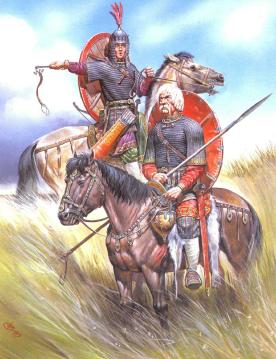 В середине XIII века галицко-волынское войско имело конские доспехи, названные летописцем татарскими (личина и кожаная попона), что совпадает с описанием Плано Карпини монгольского конского доспеха.