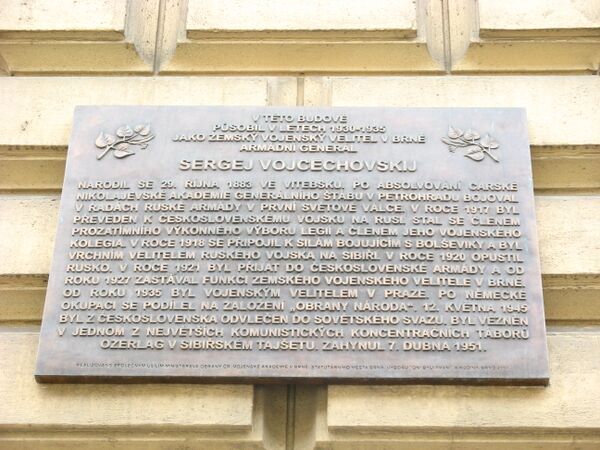 В 2003 году в чешском городе Брно на здании электротехнического института, в котором в 1920—1930-х годах размещался штаб Земского военного управления, была открыта мемориальная доска генералу Войцеховскому. Инициаторами установки мемориальной доски был комитет «Они были первыми», объединяющий потомков репрессированных в СССР чехословаков[13].
