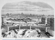 Вокзал Сен-Лазар, фр. La Gare Saint-Lazare. 54,3 × 73,6 см. Лондонская национальная галерея, Лондон, Великобритания (инв. № NG6479) | Изображена часть вокзала, предназначенная для поездов дальнего следования, расположенная вдоль улицы Амстердам.
