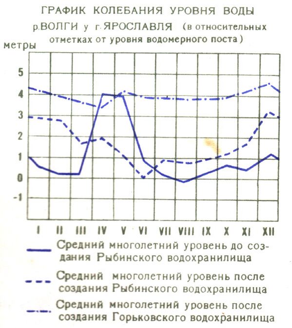 Строительство Рыбинской и Нижегородской ГЭС перераспределило годовой сток ниже Городца. Паводок (весенний сток) был срезан, сток во время летней-осенней межени был увеличен на 15 %, в зимнюю межень — в два раза.
