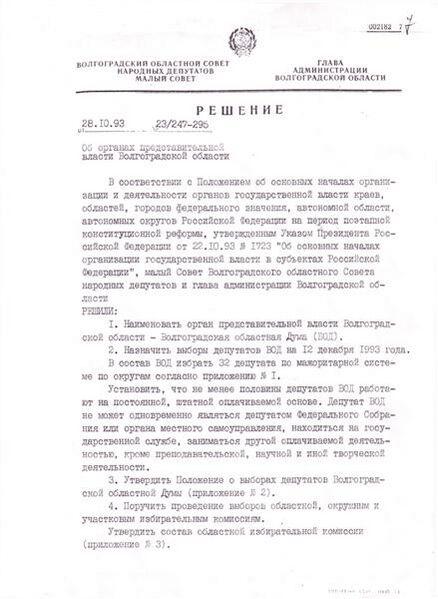 | Предшественник | Волгоградский областной Совет народных депутатов[d] |