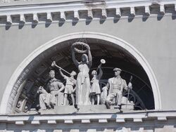 - ↑ Сергей Викторов. В Волгограде демонтируют «Апофеоз труда» : [арх. 18.08.2019] // v1.ru. — 2014. — 26 декабря. — Дата обращения: 19.08.2019.