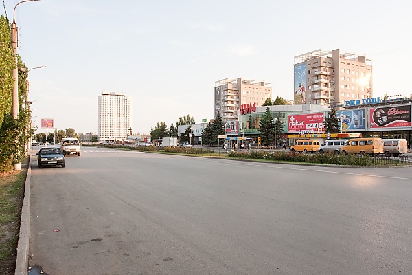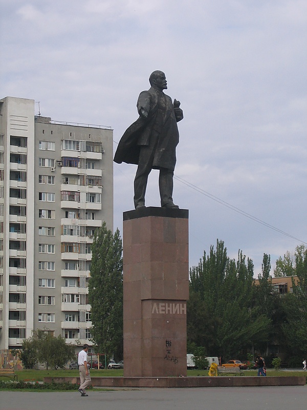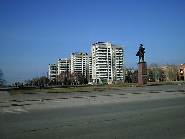 - Центр города (площадь Ленина) со зданием гостиницы «Ахтуба» и прогулочной зоной, заканчивающейся у картинной галереи и собора.
