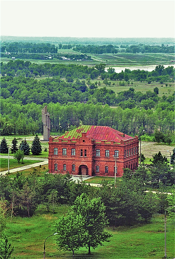 - Картинная галерея в здании старой школы на набережной Ахтубы. Рядом памятник и площадка, с которой открывается панорамный вид на пойму и Волгоград.