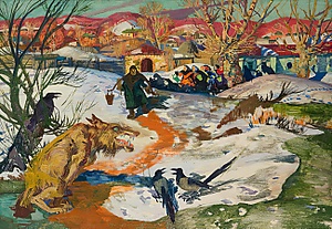 Электронная репродукция почтовой карточки «Волк и ягнёнок» (к басне И. Крылова) / художник А. Жаба. — Ленинград: Искусство, 1944.