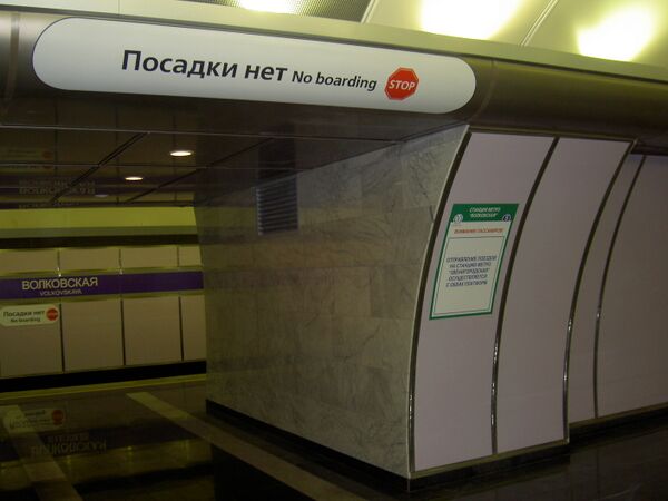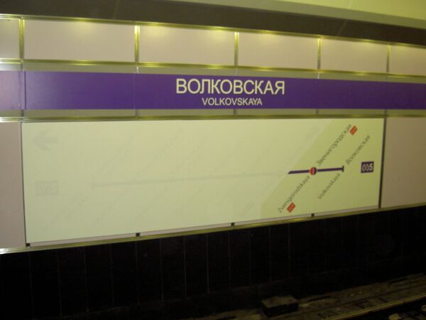 - «Волковская» — первая станция петербургского метро, в которой все информационные указатели и надписи продублированы на английском языке (для удобства туристов) в рамках реализации концепции так называемого «нового информационного пространства». После «Волковской» несколько видоизменённые указатели — часто выполненные в разнородном исполнении, и, по некоторым мнениям, почти всегда портящие внешний вид станций и путающие пассажиров[3] стали появляться и на других станциях.