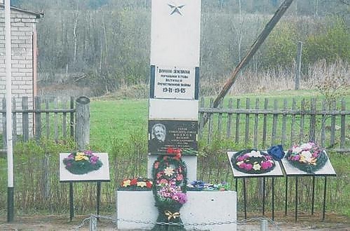 - мемориальная доска в честь Героя установлена в д. Журавлёво Бокситогорского района Ленинградской области[3].