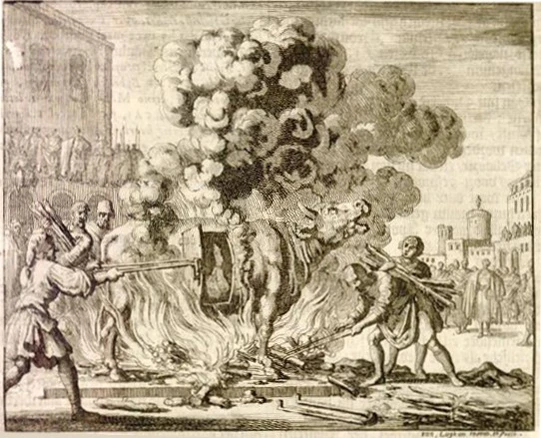 Во время первого гонения на христиан при императоре Домициане (пр. 81-96) в статуе быка, тогда ещё находившейся в Пергаме, был казнён святой Антипа[6]. Согласно труду Patrologiæ Latinæ, в ходе правления императора Юлиана Отступника (пр. 361—363) множество христиан было сожжено в бронзовом быке, тогда уже перевезённом в Константинополь[1]. В 610 году был свергнут узурпатор Фока (пр. 602—610); его тело было изувечено и сожжено в чреве быка[4]. Согласно некоторым источникам[1], император Ираклий, лично обезглавивший Фоку, переплавил статую быка в монеты, чтобы оплатить жалование своей армии в войне против персов. Однако это спорный факт, так как казни с использованием быка продолжались и после правления Ираклия: например, Юстиниан II (пр. 685—695; 705—711) сжёг в нём двух патрициев Феодора и Стефана, участвовавших в заговоре против него[1]. В период иконоборчества на площади были казнены святая Феодосия († 729) и святой Андрей Критский († 766), оба сторонники иконопочитания[1]. Святую Феодосию казнили, вбив ей в горло козий рог, найденный на форуме[7].