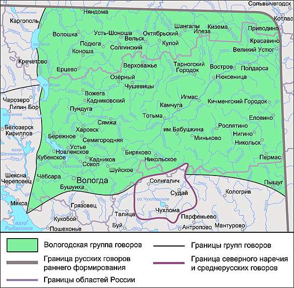 Классификация: Вологодская группа на карте говоров севернорусского наречия |