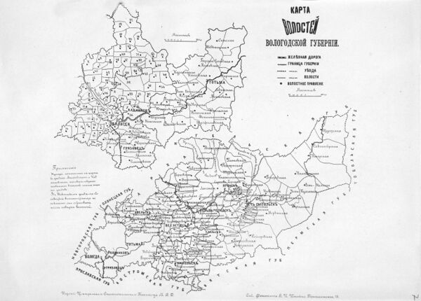- Карта Вологодской губернии из «Атласа» А. А. Ильина 1876 года (просмотр на движке Google на сайте runivers.ru)