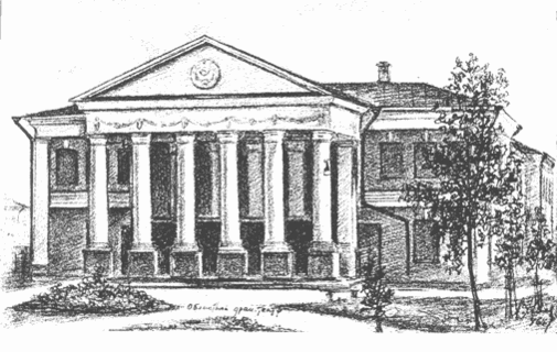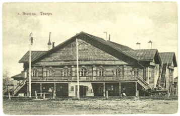 С 1863 года театральные труппы играли в здании, построенном известным театральным предпринимателем В. А. Смирновым. Оно находилось на Большой Архангельской улице (сейчас — улица Чернышевского), на месте дома Грачёва, рядом с домом Зубова (Братства Всемилостивого Спаса)[3]. Деревянное здание имело небольшое количество мест в партере, боковые двухъярусные ложи и галерею. Во второй половине 1870-х здание было приспособлено под цирковые представления, а затем по ветхости сломано[4].