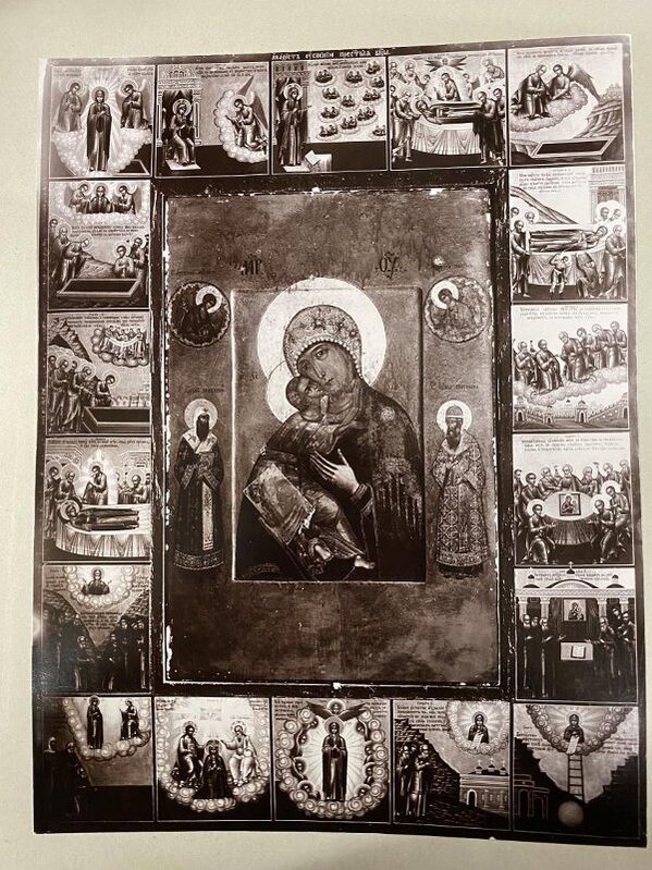 Искусствоведы дореволюционной России не испытывали интереса к Волоколамской иконе Божией Матери. Обычно её упоминали и описывали, а иногда и рассказывали историю её обретения составители описей имущества и святынь Иосифо-Волоколамского монастыря. В число подобных работ входят: «Опись ризницы Иосифо-Волоколамского монастыря 1760 года»[18], «Земная жизнь Пресвятой Богородицы и описание святых чудотворных Её икон» (1881) Софьи Снессоревой[22], «Историческое описание Иосифова Волоколамского второклассного монастыря Московской губернии, составленное онаго же монастыря иеромонахом Нектарием в 1886 году» (1887)[43], «Летопись Волоколамского Иосифова монастыря. Материалы из дел архива Московской духовной консистории 1746—1852» Петра Виноградова[19], «Материал для историко-топографического исследования о православных монастырях в Российской империи» Василия Зверинского (1892), «Волоколамский Иосифов второклассный мужской монастырь и его современное состояние» архимандрита Геронтия (1903)[44].