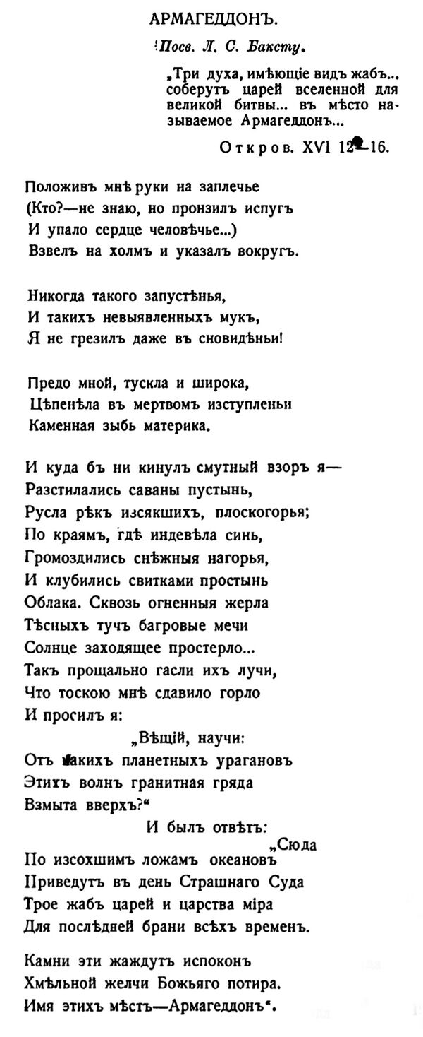 Когда я возвращался домой, потрясенный понятым и провиденным, в уме слагались строфы первого стихотворения, внушенного мне Революцией. Вот оно в окончательной своей форме[24].