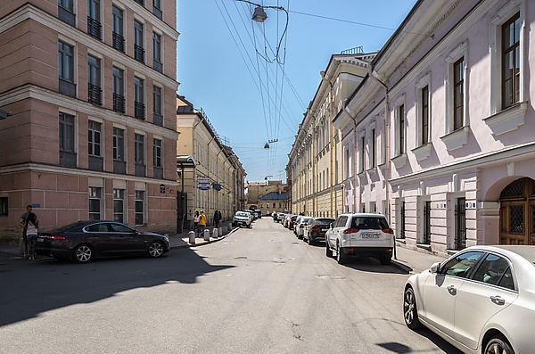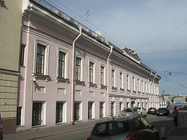781610562620006 — здание было построено в 1796 году на владении Саввы Яковлева, в 1806-м присоединено к уже стоявшему рядом особняку под номером 1. В 1818—1821 оба дома были перестроены архитектором А. И. Мельниковым. Последним владельцем дома был архитектор П. Ю. Сюзор. Сейчас в доме располагается Высшая школа менеджмента Санкт-Петербургского государственного университета[2]. - Дом 4. Дом И. Мичурина. Построен в конце XVIII — начале XIX века. В 1822 году расширен архитектором Антонио Адамини. В начале XX века здание занимала Фабрика бристольских карт и литография «Иосиф Скамони», в советское время — Завод пластмассовой фурнитуры. В 2006—2007 годах дом был снесён. Фасад дома воссоздан в новом здании в составе комплекса «У Ростральных колонн».