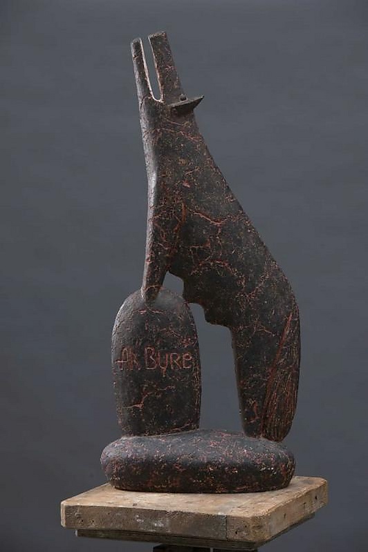 Композиция представляет обобщённое изображение воющей волчицы с набухшими сосцами. Фигура изображена в динамичной позе. Волчица представлена с задранной головой и раскрытой пастью. Передние лапы опираются на стелу с округлым верхом. На одной из сторон стелы прорезано изображение полумесяца. Фигура установлена на округлом основании. Размеры работы составляют 80×30×15 см.