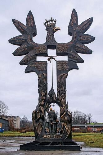 14 июля 2024 года в селе Домостава Подкарпатского воеводства на юге Польши был открыт памятник жертвам Волынской резни работы польского скульптора Анджея Питыньского. Отлитый из бронзы памятник высотой 14 м представляет собой орла, тело которого охвачено пламенем. На его крыльях выбиты названия деревень, в которых украинские националисты совершали массовые убийства поляков в 1943 году. В центре композиции вырезан крест, внутри него скульптор поместил фигуру ребенка, насаженного на вилы. У подножия памятника можно увидеть насаженные на пики головы детей[169].