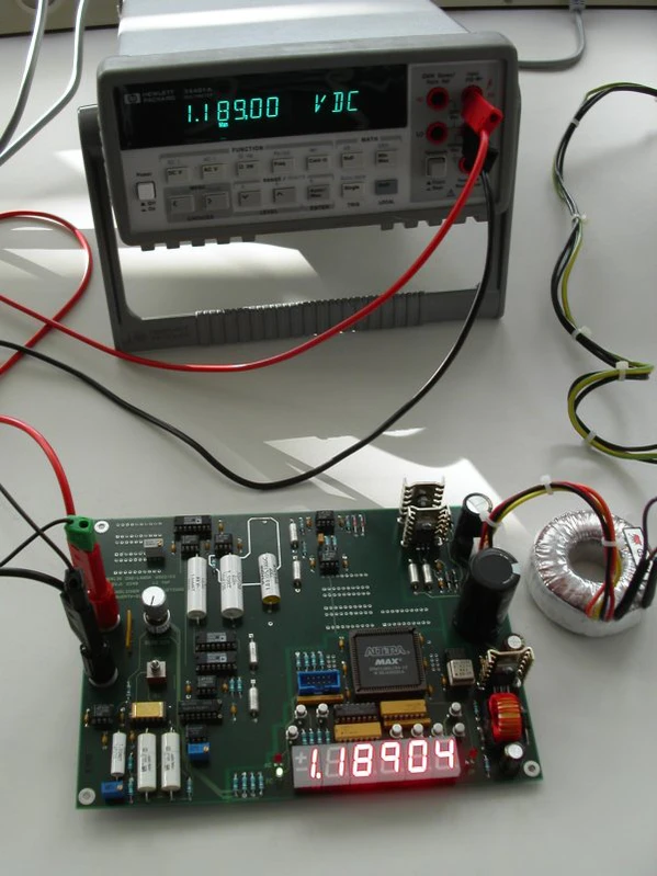 Принцип работы вольтметров дискретного действия состоит в преобразовании измеряемого постоянного или медленно меняющегося напряжения в электрический код с помощью аналого-цифрового преобразователя, который отображается на табло в цифровой форме.