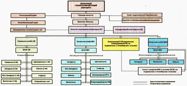 В военно-административном отношении территория страны делится на пять военных округов: Северный, Западный, Центральный, Южный, Восточный.