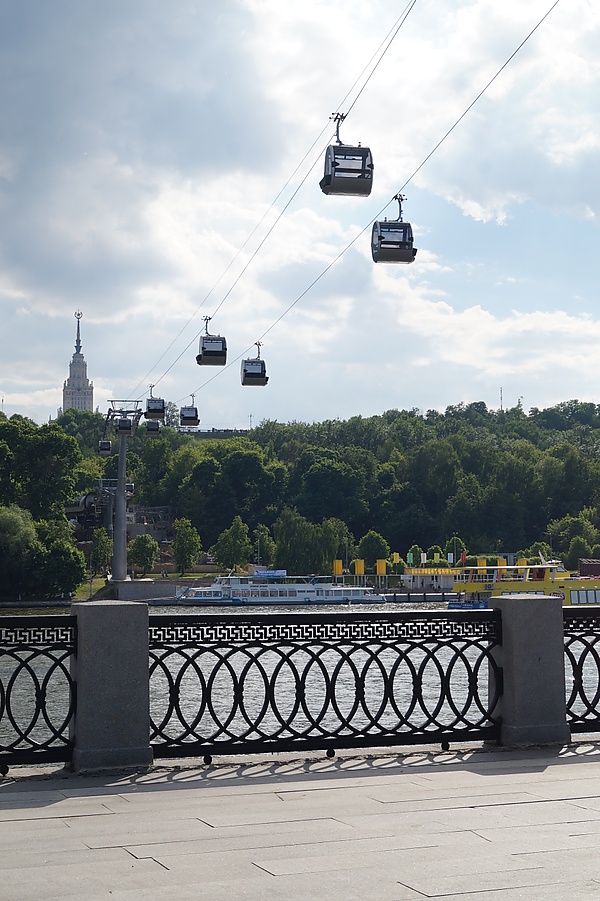 В 1953 году на Воробьёвых горах был открыт канатно-кресельный подъёмник, построенный по проекту инженера Галли вместе с большим трамплином для обслуживания спортсменов. Летом 2016 года подъёмник в рамках программы по реконструкции спорткомплекса на Воробьёвых горах был демонтирован. На его месте было начато возведение новой канатной дороги, открытие которой намечалось к чемпионату мира по футболу 2018 года. В мае 2018 года было объявлено о переносе сроков завершения строительства. Открытие новой канатной дороги состоялось 26 ноября 2018 года. Она перекинулась через Москву-реку и связала Лужники и смотровую площадку на Воробьёвых горах с промежуточной остановкой на Воробьёвской набережной. Длина дороги — 720 метров.