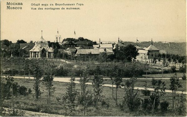 В 1817 году на Воробьёвых горах был заложен Храм Христа Спасителя, памятник Отечественной войны 1812 года. Он должен был тремя террасами спускаться с вершины Воробьёвых гор к Москве-реке. Но во время земляных работ обнаружилось, что гора осыпается, сползает, и в 1827 году строительство было прекращено. Некоторое время на Воробьёвых горах оставались лишь бараки для рабочих-строителей и два кирпичных завода[9].