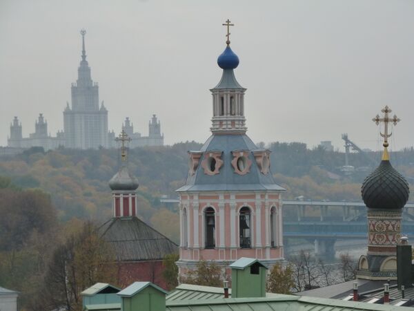 - Обзор Воробьёвых гор с веб-камеры, установленной на главном здании МГУ. Online трансляция