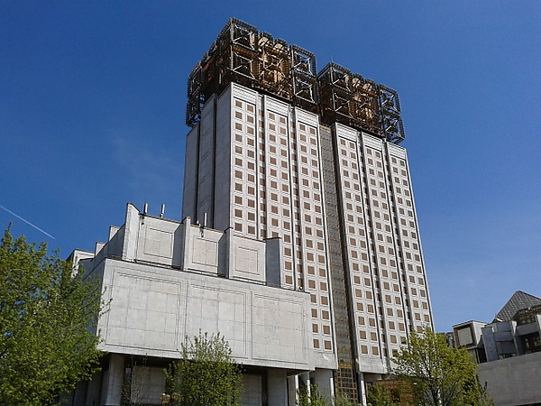 Архитекторы Б. М. Иофан, Л. В. Руднев, С. Е. Чернышёв, П. В. Абросимов, А. Ф. Хряков, В. Н. Насонов, скульптурное оформление фасадов — работы мастерской В. И. Мухиной.