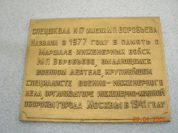 - С 1978 года имя маршала инженерных войск Воробьёва носит московская Измайловская гимназия (бывшая спецшкола № 17).