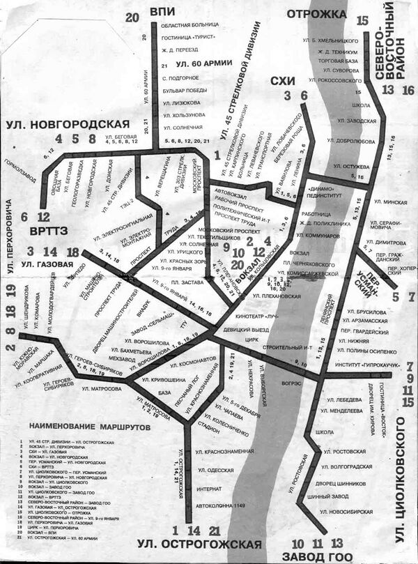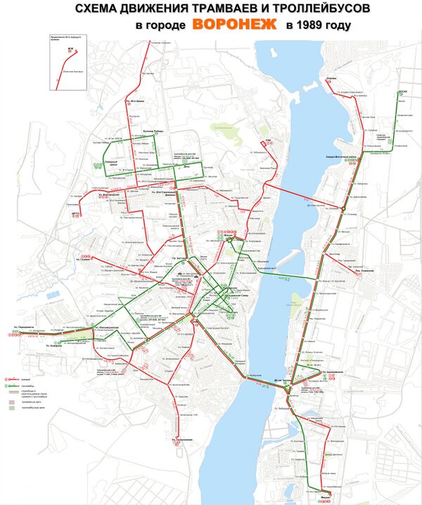 - ↑ Схема — трамвайные маршруты Воронежа в 1999—2001 гг.