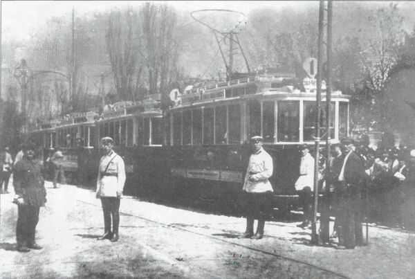 К середине 1914 года трамвайная инфраструктура была практически создана, но подвижного состава и ещё некоторого оборудования не было[13]. Известно, что впоследствии на протяжении нескольких лет предпринимались попытки заказать отечественные аналоги недостававшего оборудования[7], в частности, трамвайные вагоны, но они не увенчались успехом.