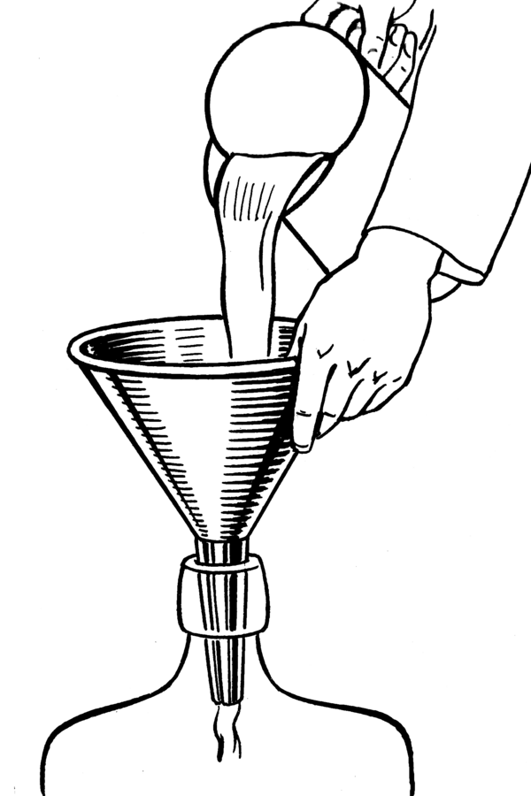- Воронка Шотта: стеклянная с несъёмным фильтром из спечённой стеклянной крошки. Благодаря порам перегородки можно фильтровать без бумажных фильтров — часто используется для фильтрации под вакуумом.