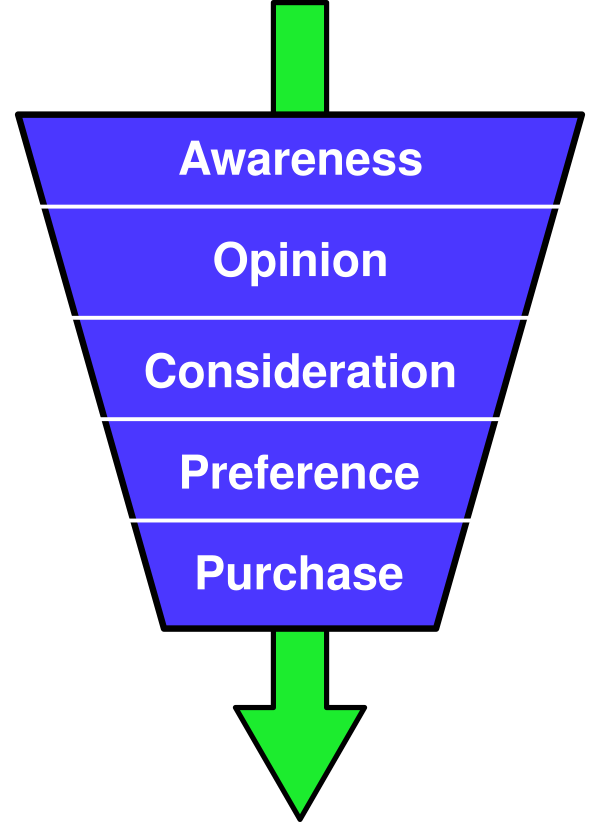 - осведомлённость (awareness) — клиент осведомлён о существовании продукта или услуги;