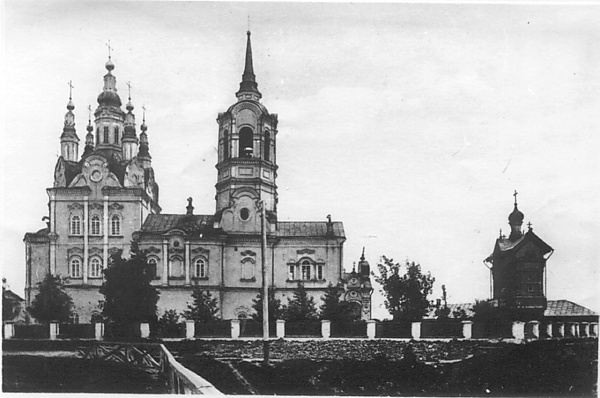 Храм первоначально был деревянным и находился на территории Богородице-Успенского мужского монастыря, упразднённого в 1626 году.[2] Её основатель — первый архиерей Тобольский Киприан в 1622 году. Обветшавший из-за частых пожаров храм решили перестроить. Так в 1789 году Егором Домоневским и Петром Барановым был заложен каменный фундамент церкви, однако её строительство часто приписывают томским мещанам Ивану Карпову и Ивану Недомолвину.