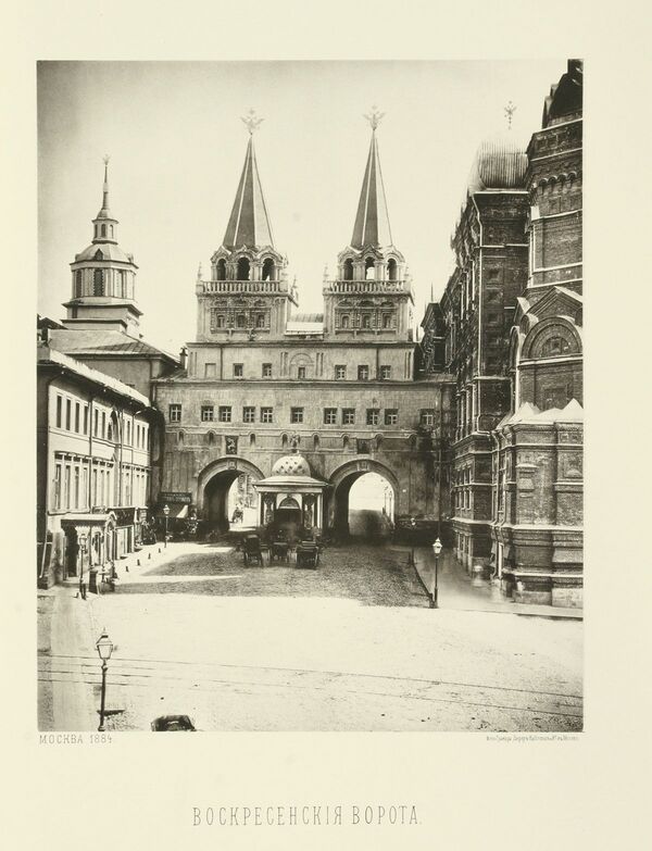 От ворот через Неглинную был переброшен сначала деревянный, а с 1603 года каменный Воскресенский мост длиной 44 и шириной 10,5 м. В 1612 году через ворота прошли, направляясь в Кремль, ополченцы во главе с Кузьмой Мининым и Дмитрием Пожарским[12].