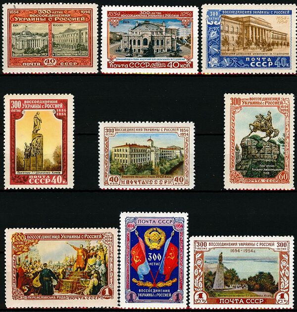 - В 1954 году Почта СССР выпустила серию марок посвящённую 300-летия воссоединения Украины с Россией.