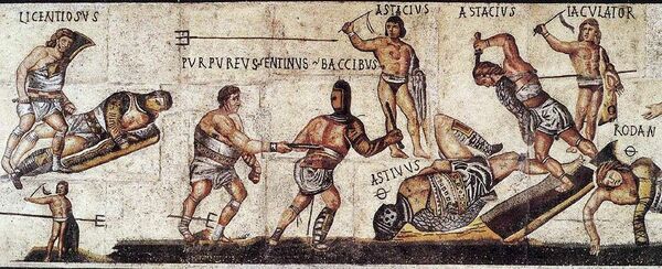Хотя бои насмерть среди невольников проводились ещё этрусками в ритуальных целях, в Римской республике обычай устраивать бои между пленниками или рабами зародился в Кампании[28]. В 308 году до н. э., после победы римлян над самнитами, союзники римлян кампанцы заставили пленных самнитов сражаться между собой[29]. Первый гладиаторский бой в Риме произошёл в 264 году до н. э. Тогда Марк и Децим Бруты на похоронах их отца устроили три поединка гладиаторов[30]. В следующие годы гладиаторские бои завоёвывали всё большую популярность. В I веке до н. э. гладиаторские бои были одной из наиболее популярных форм развлечений[30]. С целью подготовки гладиаторов по всей Италии были созданы специальные школы. В этих школах военнопленных и преступников, которые считались рабами, обучали навыкам, необходимым для того, чтобы сражаться насмерть на гладиаторских играх. Гладиаторы были рабской «элитой», они, как правило, продавались за весьма немалые суммы, обогащая своих владельцев, так что во времена римской республики подготовка и перепродажа гладиаторов составляли весьма прибыльное дело. Хозяева гладиаторских школ, ланисты, уже ради собственной выгоды должны были следить, чтобы «товар» прекрасно питался и был в великолепной физической форме, а заодно был обучен воинскому искусству самым лучшим образом[31].