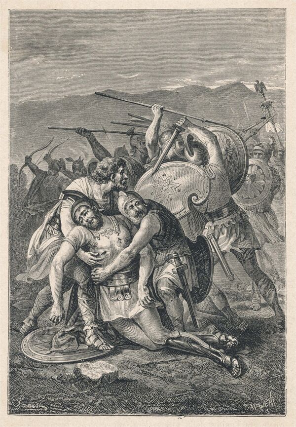 Римские историки отдают дань его личному мужеству в последней битве. Аппиан сообщает, что Спартак «был ранен в бедро дротиком: опустившись на колено и выставив вперёд щит, он отбивался от нападавших, пока не пал вместе с большим числом окружавших его»[99]. Плутарх пишет: «…перед началом боя ему подвели коня, но он выхватил меч и убил его, говоря, что в случае победы получит много хороших коней от врагов, а в случае поражения не будет нуждаться и в своём. С этими словами он устремился на самого Красса; ни вражеское оружие, ни раны не могли его остановить, и всё же к Крассу он не пробился и лишь убил двух столкнувшихся с ним центурионов. Наконец, покинутый своими соратниками, бежавшими с поля битвы, окружённый врагами, он пал под их ударами, не отступая ни на шаг и сражаясь до конца»[102]. Луций Анней Флор пишет: «Спартак, храбро бившийся в первом ряду, пал как полководец». Хотя тело Спартака так и не нашли, по мнению историков, он погиб в бою вместе со своими людьми.
