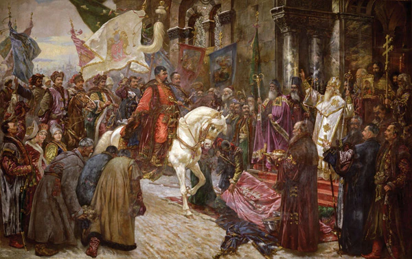8 (18) января 1654 года в Переяславле была собрана рада, на которой после речи Хмельницкого, указывавшего на необходимость для Украины выбрать кого-нибудь из четырёх государей: султана турецкого, хана крымского, короля польского или царя московского и отдаться в его подданство, народ единодушно закричал: «Волим под царя московского, православного».